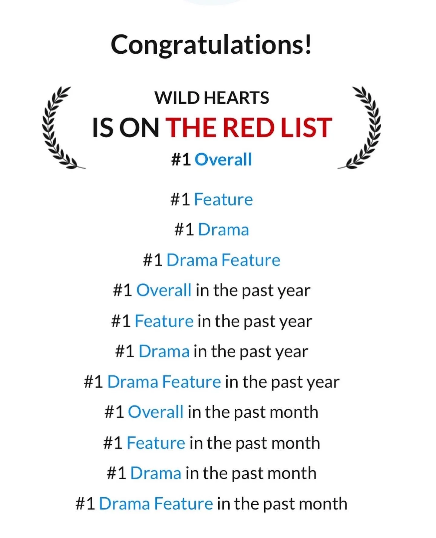 Wild hearts is the number 1 project on coverfly overall, and in every category including number 1 feature and number 1 drama script